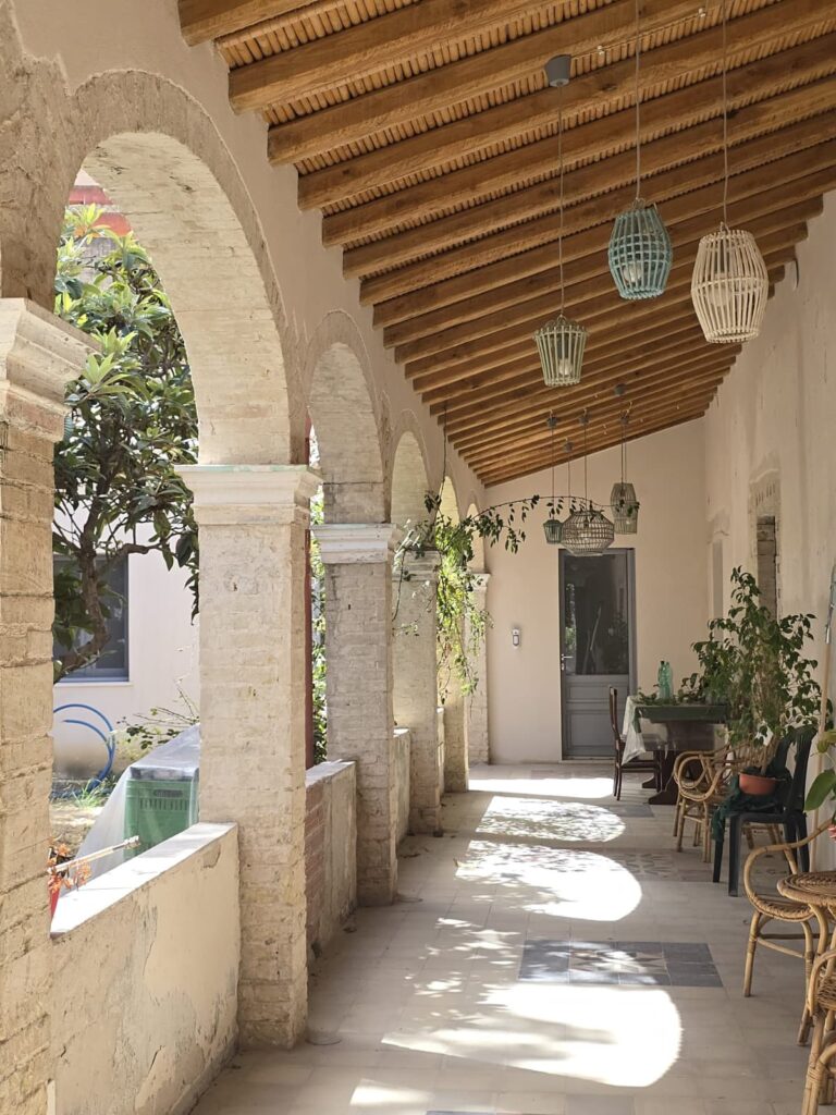I materiali utilizzati a suo tempo nella costruzione dell’edificio (argilla cruda e cotta, legno, canne, calce) sono materiali ecologici e biocompatibili. L’intervento, anche in questo caso, ha tenuto conto e preservato questa meravigliosa caratteristica. Nella copertura, ricostruita con legno, canne e manto di tegole di recupero, si è scelto di realizzare l’isolamento termico con pannelli di sughero, materiale naturale prodotto localmente, permeabile al vapore acqueo.
