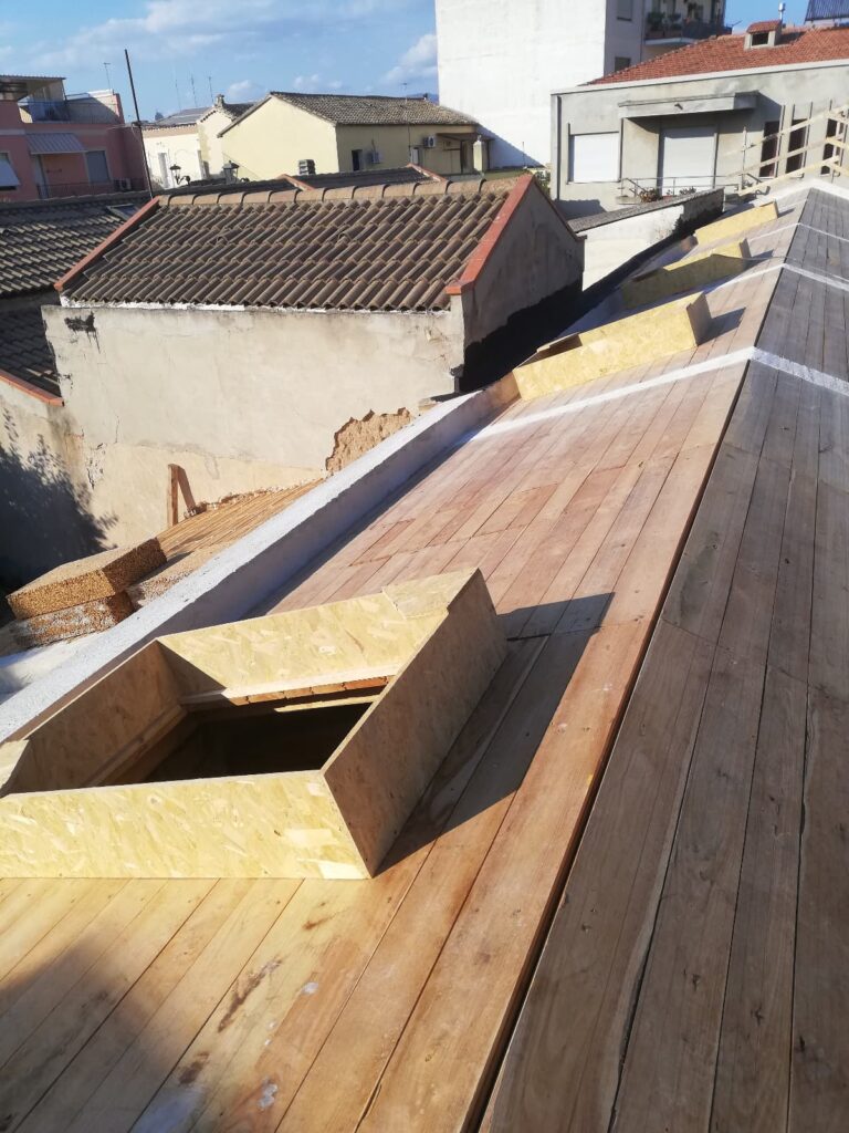 Al di sotto del manto di copertura è stata realizzata una camera di ventilazione, soluzione adatta ai climi mediterranei con irraggiamenti importanti, per la riduzione dell’apporto di calore estivo. La copertura ventilata sfrutta un principio di ventilazione naturale che consente all’aria surriscaldata di fuoriuscire dal colmo, richiamando aria più fresca.