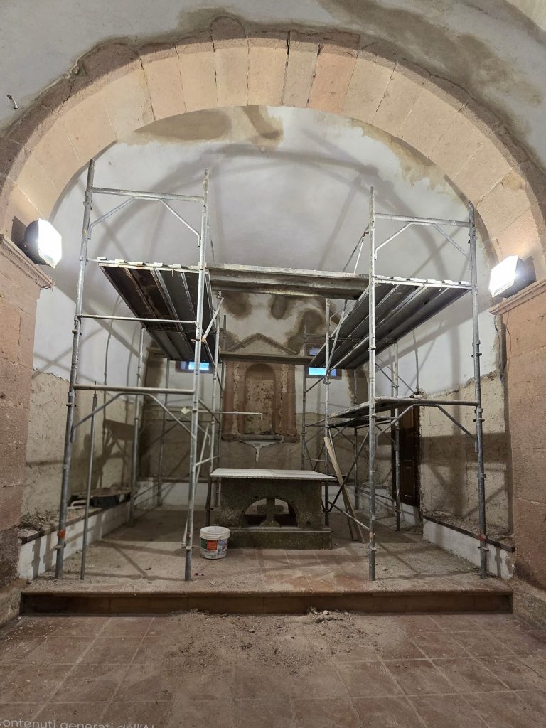 L’intervento si articola su due binari: la messa in sicurezza, attraverso la revisione del manto di copertura e il consolidamento delle murature perimetrali e dei contrafforti, e il risanamento, affidata a meticolose operazioni di pulitura e ripresa degli intonaci. La particolarità del cantiere è l’imminente restauro specialistico degli elementi lapidei decorati: un lavoro di precisione che restituirà l’antico splendore al pregevole rosone di trachite rossa e alle modanature lapidee, simboli di una devozione millenaria che torna finalmente a dialogare con il presente..