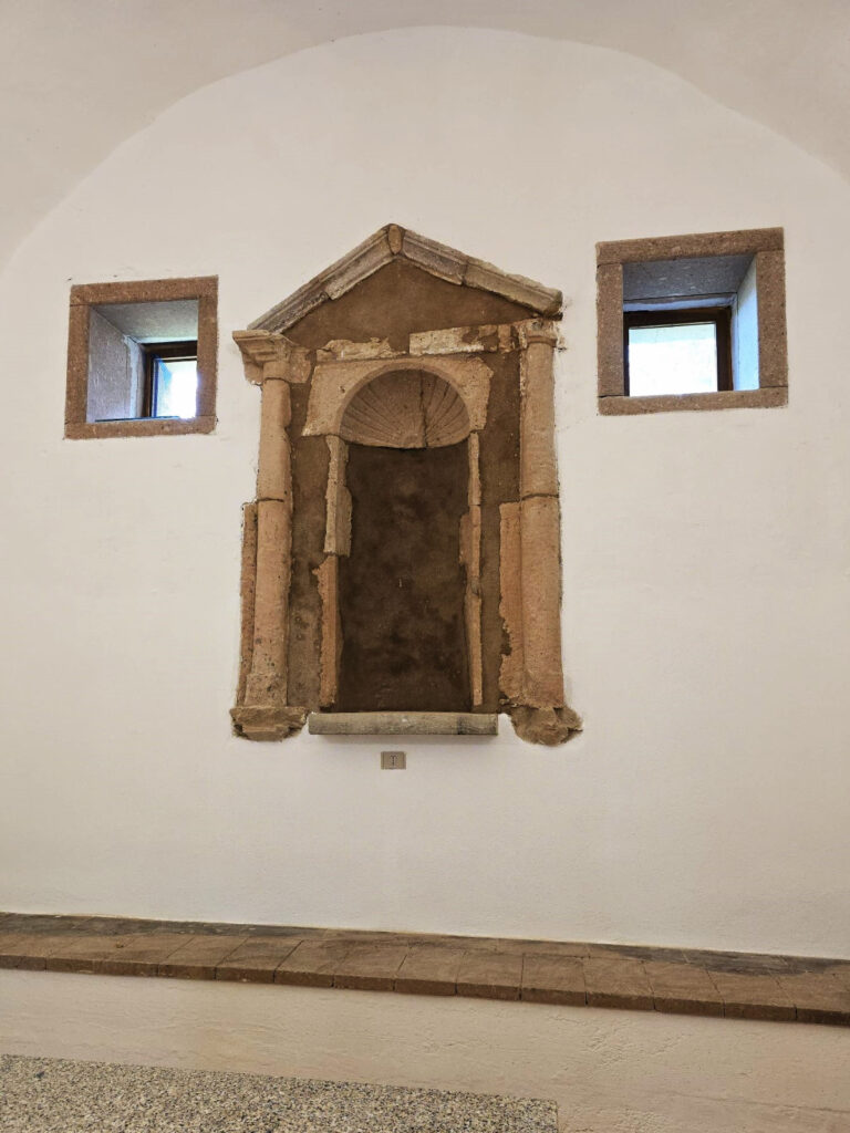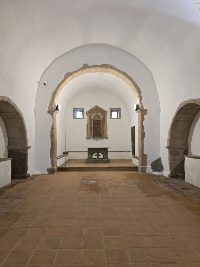 Immersa nel silenzio rigenerante di un parco secolare a pochi chilometri da Teti, la chiesa di San Sebastiano è un santuario dalle origini remote, avvolte nel fascino dell’epoca bizantina. Il progetto di restauro, attualmente in fase di esecuzione, affronta la sfida di risanare un manufatto segnato da un degrado diffuso, riportando alla luce la bellezza dei suoi preziosi elementi lapidei.